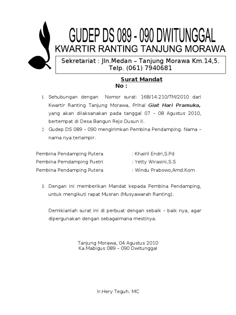 Surat mandat adalah surat yang berisi perintah atau mandat dari atasan gugus depan ke bawahan untuk melaksanakan tugas yang dimaksud. Nahdlatus shaufiah wanasaba memberi izin rekomendasi kepada siswa siswi untuk mengikuti kegiatan olimpiade di sman 1 aikmel dengan pertimbangan. Scopri ricette, idee per la casa, consigli di stile e altre idee da provare. Download pramuka surat mandat format 818 x 1065 pixel. Download 5 contoh surat perintah mandat doc yang baik dan.